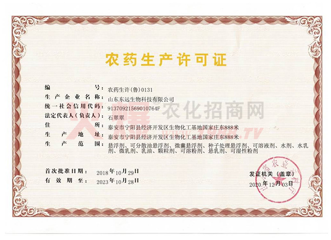 山東東遠生物科技有限公司,創(chuàng)建于1998年,是集農(nóng)藥產(chǎn)品研究、開發(fā)、生物、科技、銷售為一體的國家農(nóng)藥定點生產(chǎn)企業(yè)。